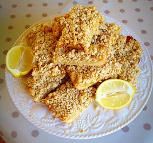 Oat Topped Lemon Shortbread Bars - Feasting Is Fun