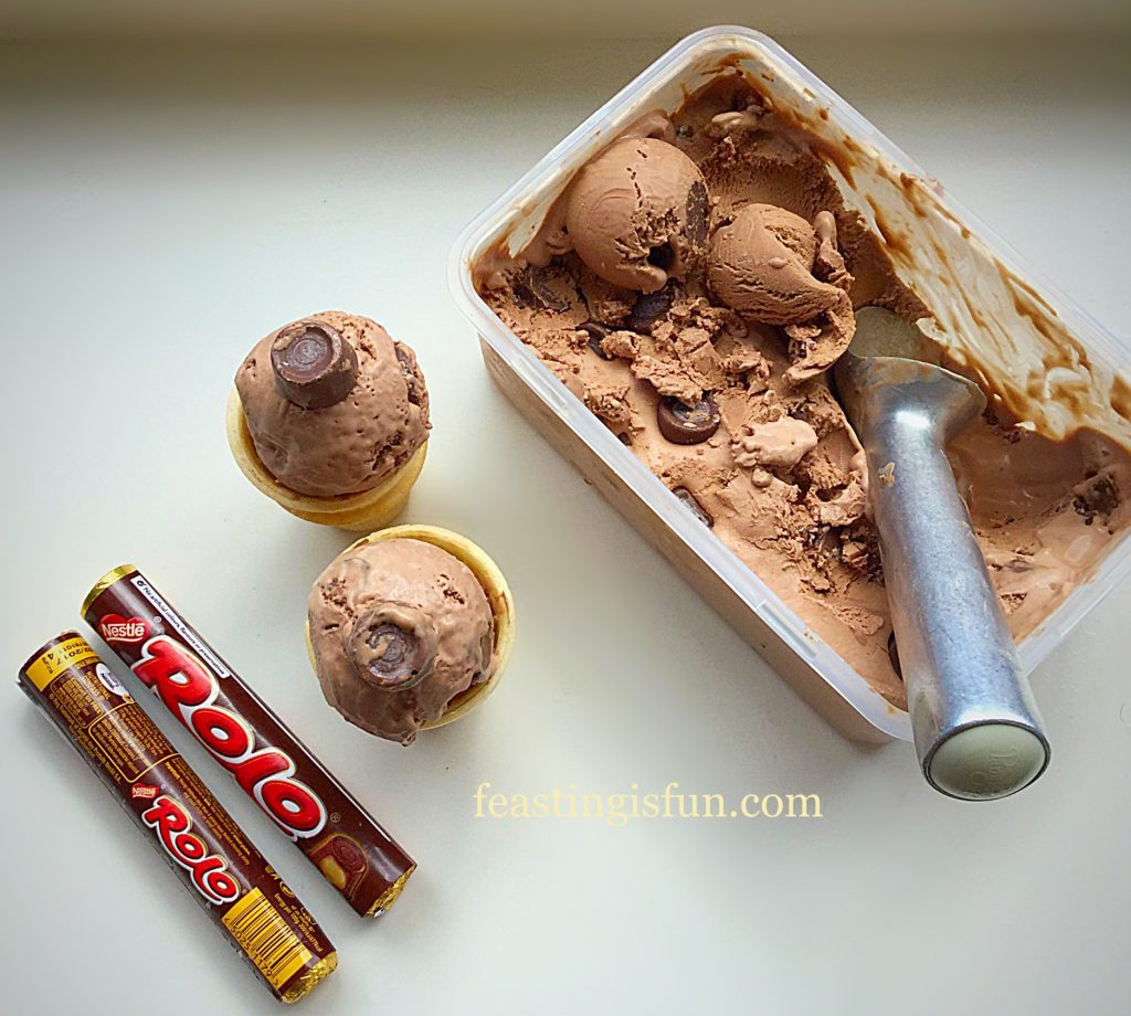 - To serve, remove the ice cream from the freezer 15-20 before scooping. As our delicious Chocolate Rolo Ice Cream doesn’t have any artificial softener, preservatives or additives added to it, it’ll need a few minutes to soften up.