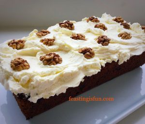 An incredibly moist and delicious cake, that includes walnuts, it is also lump free. Chopping the walnuts very finely ensures their nutty flavour mixes well with the coffee and spices. While the maple syrup icing adds another layer of flavour. Resulting in a light, not heavy sponge, that tastes fantastic.