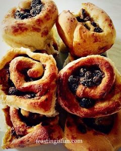 As soon as my chief taste testers, here at Feasting headquarters had tasted these buns, success was proclaimed. Even from the harshest of my critics. Yummy, mmm are there more, escaped from messy chocolate mouths. As for me, the harshest judge of all, well, I am impressed. All of the attempts at making the perfect chocolate swirl bread have paid off. Flavour and texture in perfect chocolate swirled harmony.