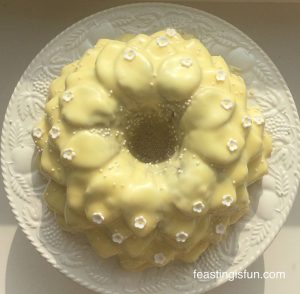 Each bundt pan is different. Yet some share similar moulding, creating a range of pans. Lemon Lime Gin Heart Bundt Cake uses the elegant heart pan which has the same deep grooves as the elegant party Bundt used here. Deep, regular grooves define the entire shape of the baked cake. Indeed a light dusting of icing sugar would enhance, in a much simpler way, the outline of this bundt cake. Especially useful, should the drizzle icing be a step too far!
