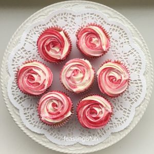 While simple and easy to make, this recipe is designed so that novice bakers can follow and bake incredible cupcakes. Also the buttercream is piped without a nozzle, therefore deleting a need for more equipment. Since a plastic freezer bag can double as an icing bag, simply cut off one corner to leave a 1cm opening, this recipe really is for everyone.